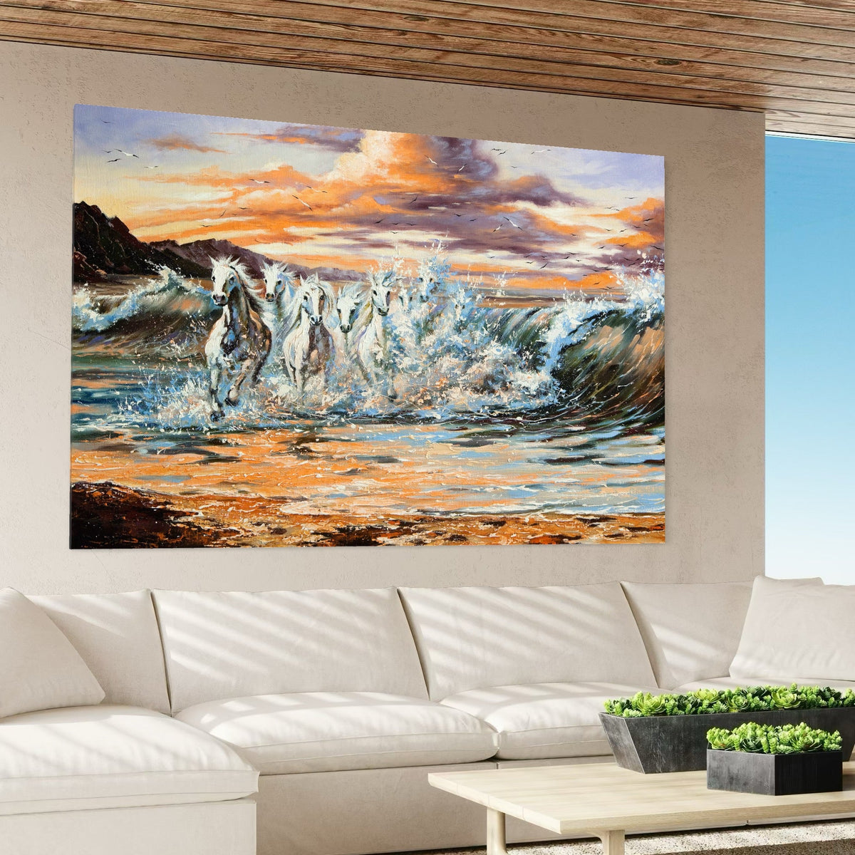 Tablou Canvas Premium LuxCanva® C1009, Cai Iesind Din Mare , Living, Dormitor, Birou, Relaxare, Culori Vibrante - 50 X 75