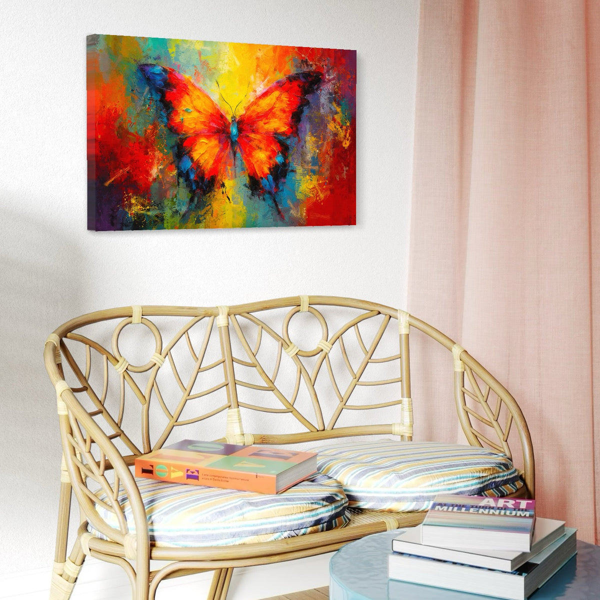 Tablou Canvas Premium LuxCanva® C1101, Fluture Viu Colorat , Culori, Fluture, Living Room, Bedroom, Relaxare, Culori Vibrante - 65 X 100