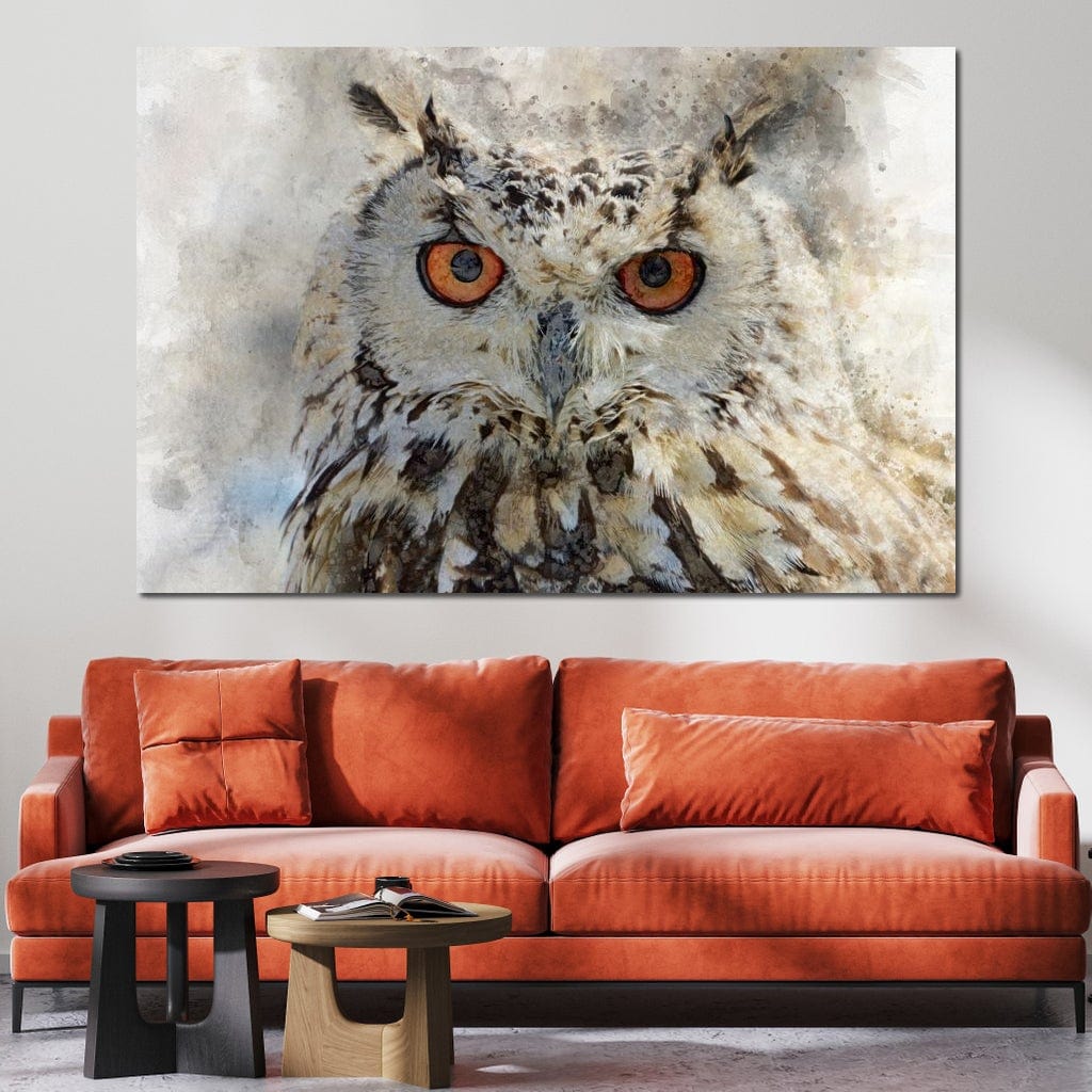 Tablou Canvas Premium, LuxCanva® M1022, Bufnita Pictata in Ceata, Bufnita, Pasare, Intelepciune, Mister, Privire, Penaj, Minimalist, Birou, Living, Camera Copii