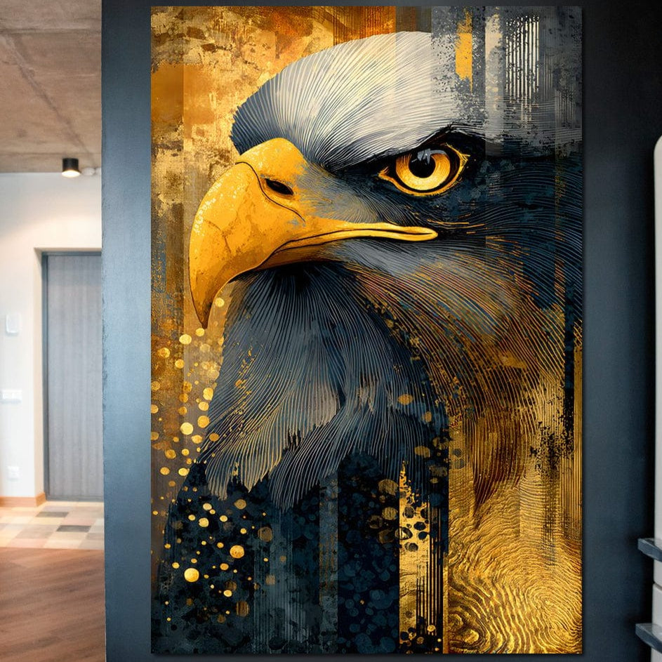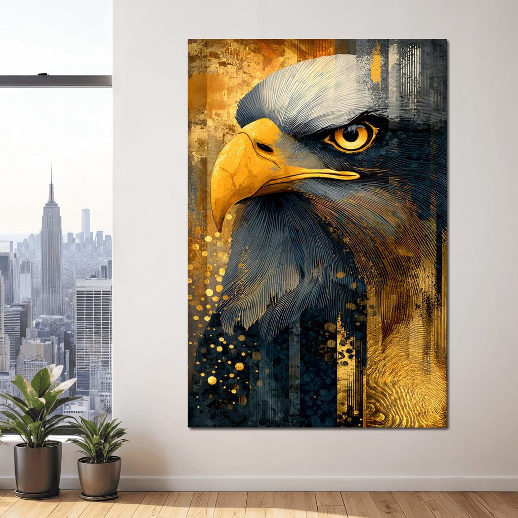 Tablou Canvas Premium, LuxCanva® M1031, Colosul Privirii, Vultur, Acvila, Putere, Privire, Auriu, Profil, Portret, Motivational, Simbolic, Birou, Living, Camera Copil - 60 X 90