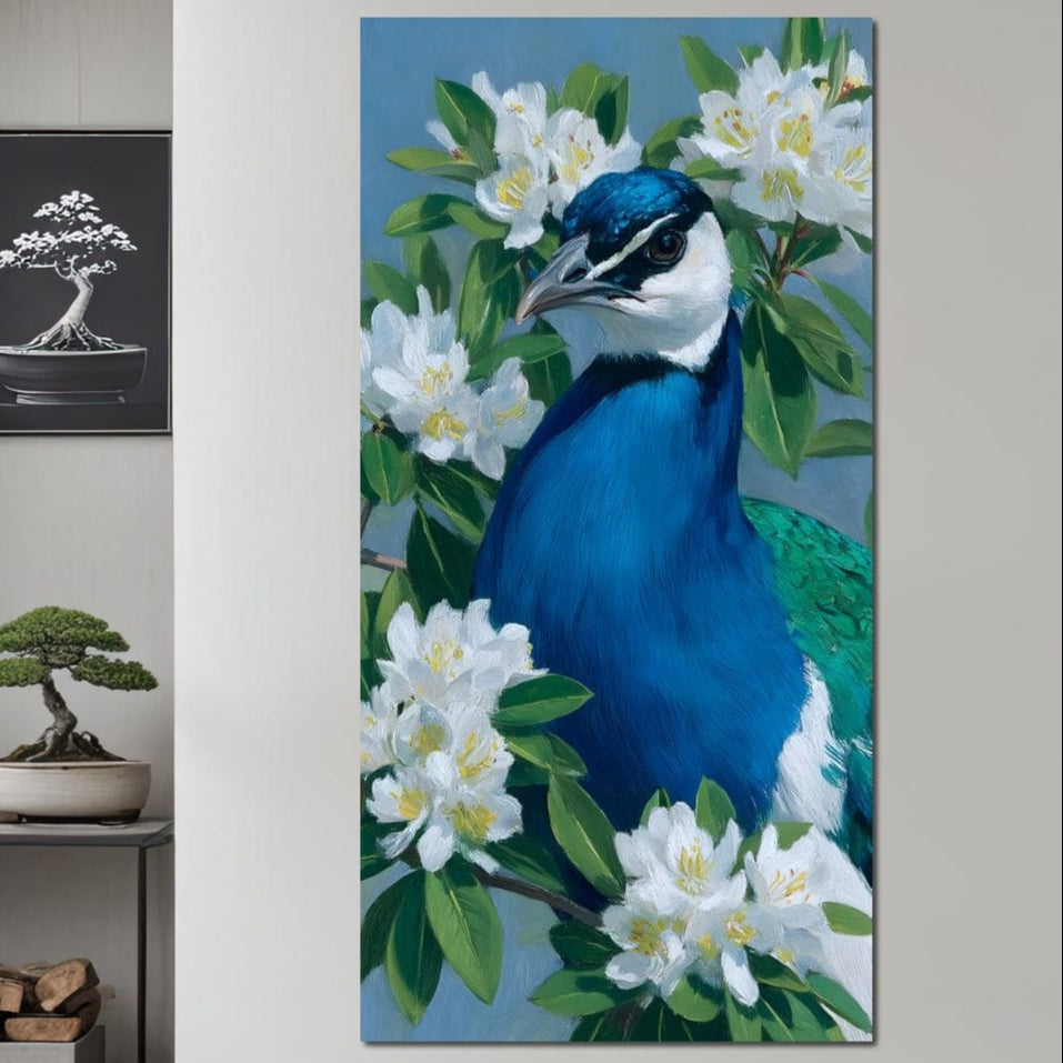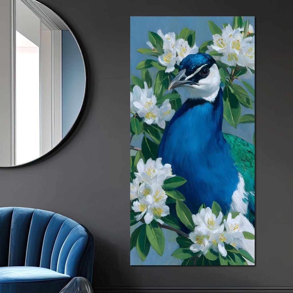 Tablou Canvas Premium, LuxCanva® M1117, Aurora Albastra, Estetic, Arta, Portret, Flori, Paun, Gratios, Privire, Pictura, Exotic, Elegant, Natura, Contrast, Birou, Living, Camera Copil - 40 X 80
