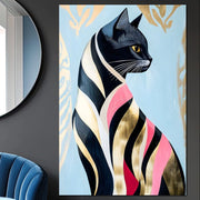 Tablou Canvas Premium, LuxCanva® M1177, Felina Sofisticata, Eleganta, Auriu, Grafica, Abstract, Pisica, Liniar, Pastel, Lux, Feminin, Desen, Modern, Birou, Living, Camera Copil