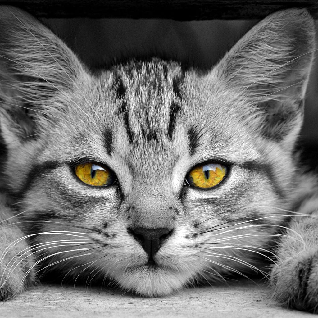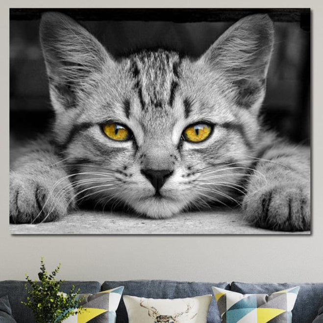 Tablou Canvas Premium, LuxCanva® M1180, Scanteia Inocentei, Ochi, Felina, Pisica, Copilarie, Mic, Inocent, Dragalas, Privire, Blana, Alb si Negru, Animal, Birou, Living, Camera Copil