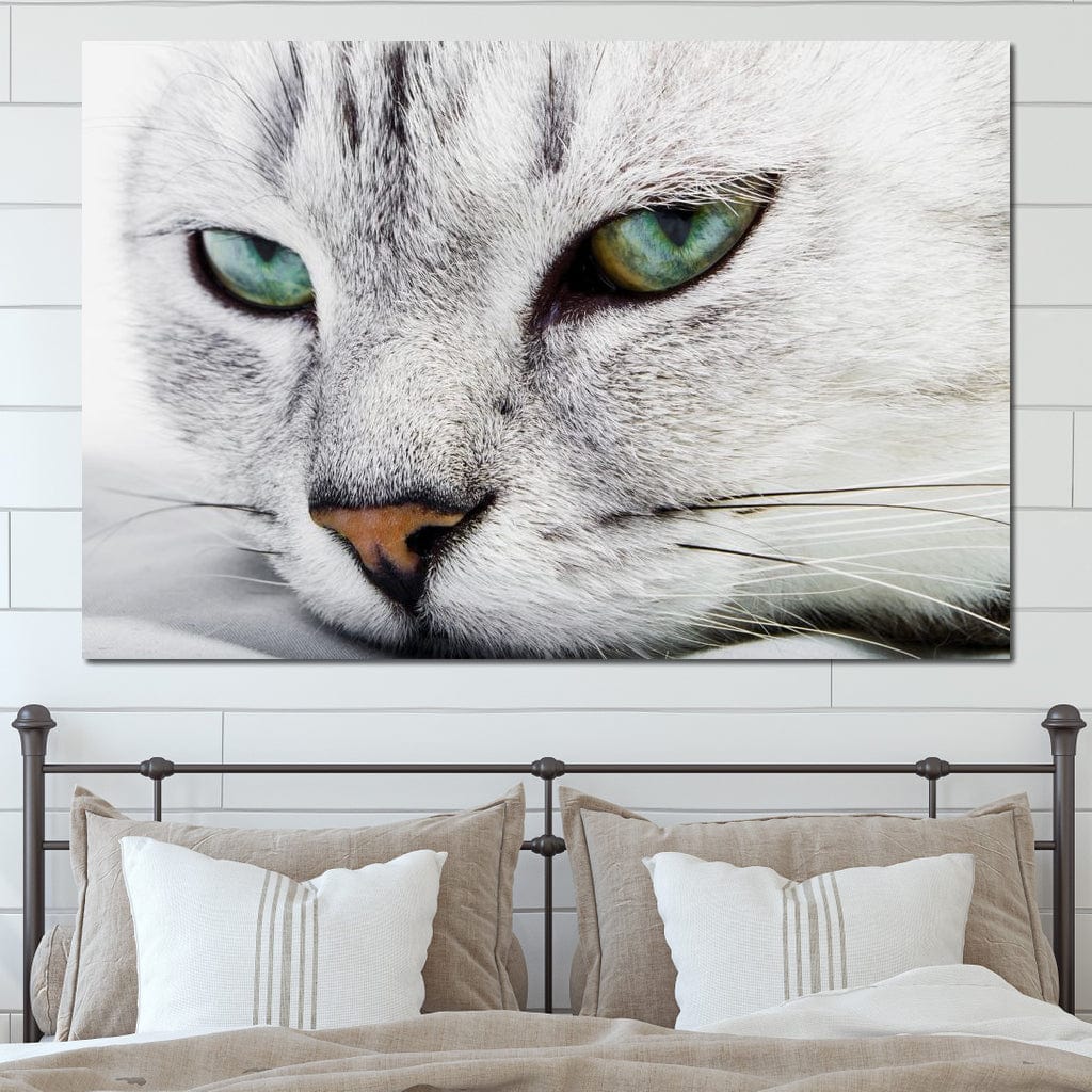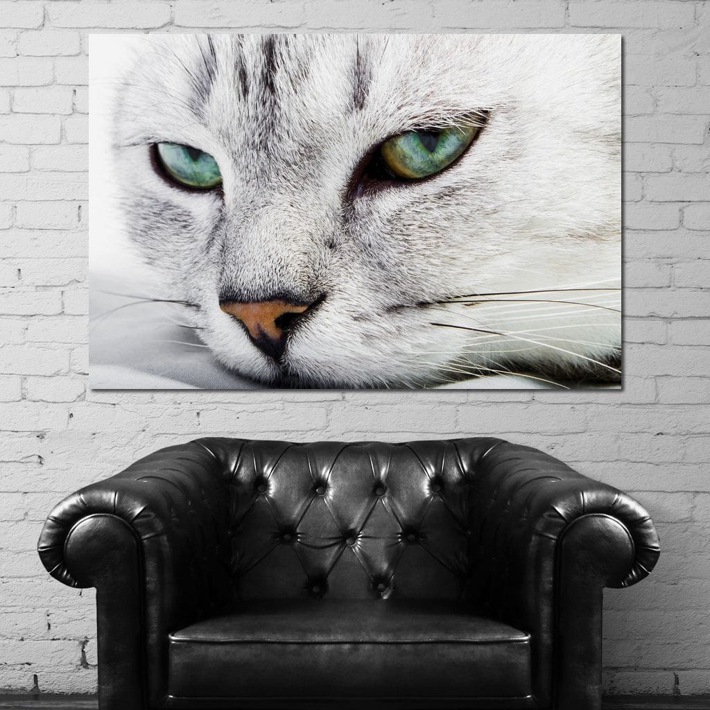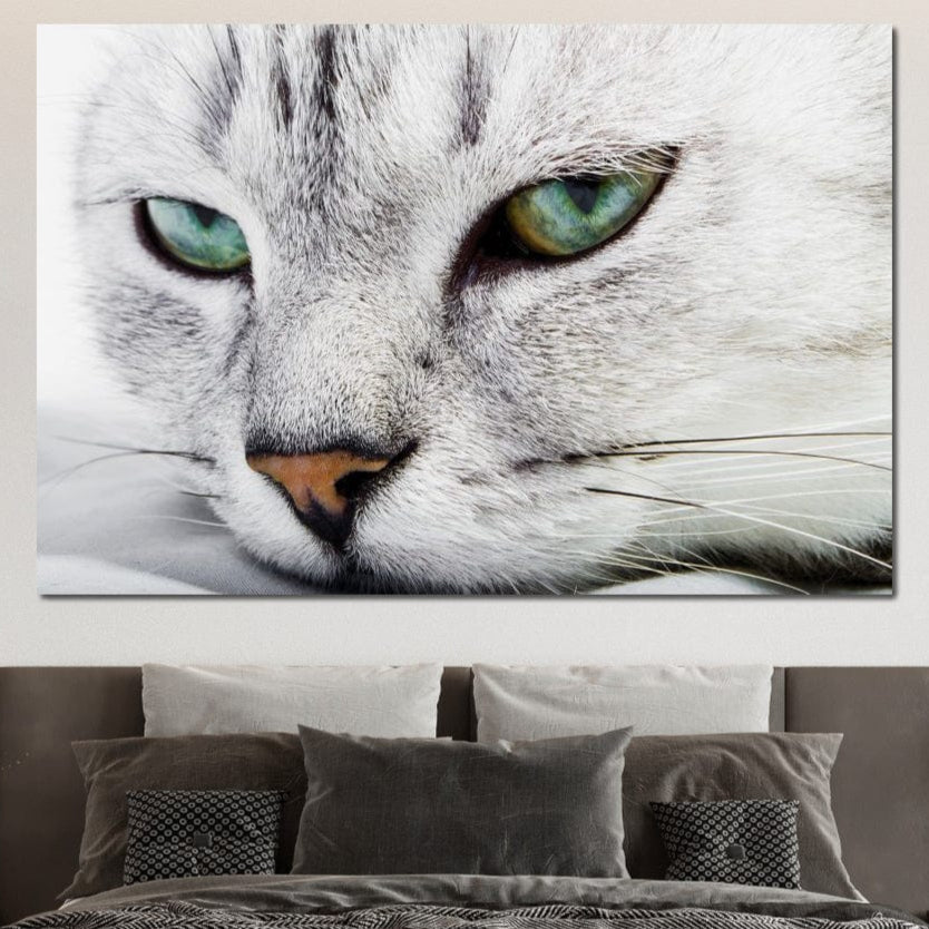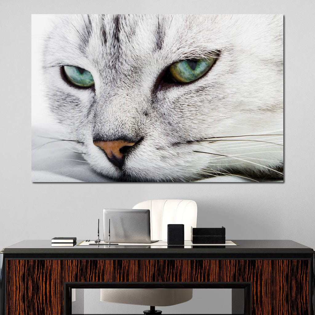 Tablou Canvas Premium, LuxCanva® M1187, Smarald Adormit, Pisica, Felina, Chip, Ochi, Verde, Privire, Portret, Vis, Relaxare, Natura, Blana, Birou, Living, Camera Copil - 40 X 60