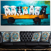 Tablou Canvas Premium, LuxCanva® M1272, Expeditia Catelusilor, Caruta, Sir, Grup, Catei, Joaca, Rustic, Prieteni, Aventura, Veselie, Roata, Lemn, Pictura, Birou, Living, Camera Copil - 50 X 100
