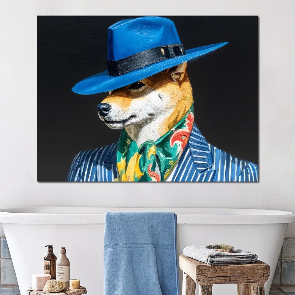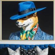 Tablou Canvas Premium, LuxCanva® M1282, Prieten Sub Acoperire, Caine, Costum, Retro, Elegant, Palarie, Esarfa, Moda, Stil, Pictura, Dungi, Birou, Living, Camera Copil - 45 X 60
