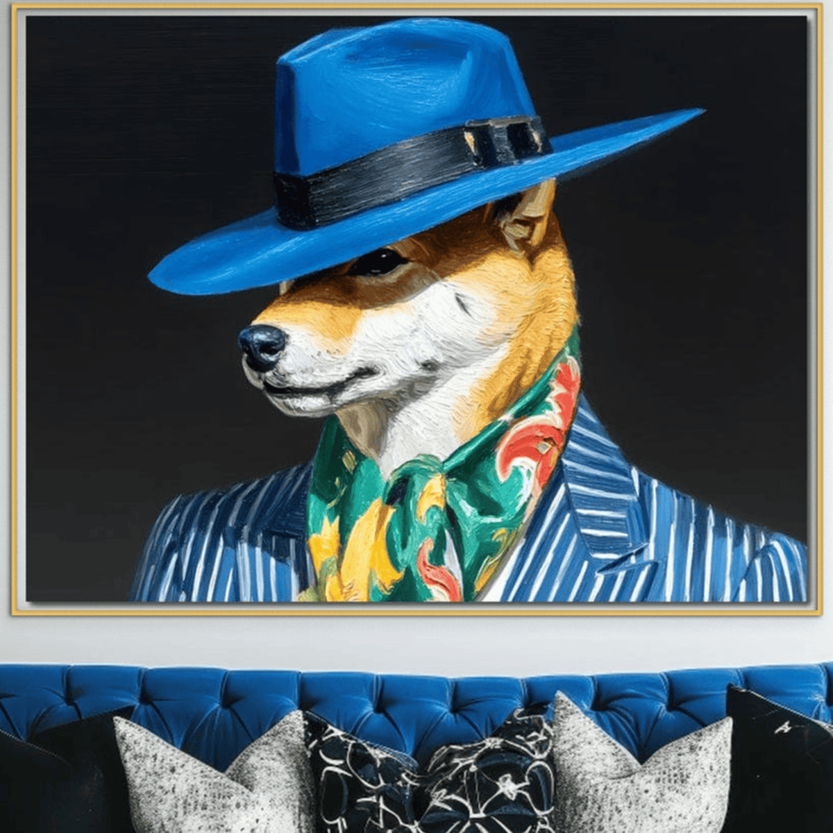Tablou Canvas Premium, LuxCanva® M1282, Prieten Sub Acoperire, Caine, Costum, Retro, Elegant, Palarie, Esarfa, Moda, Stil, Pictura, Dungi, Birou, Living, Camera Copil