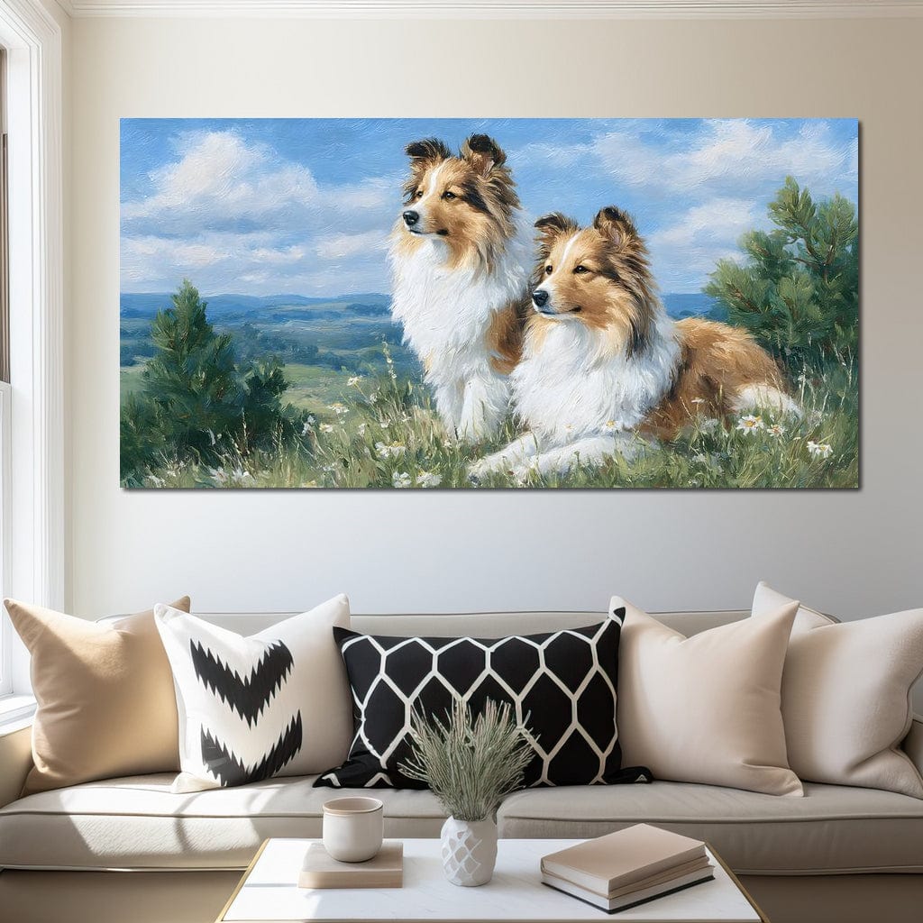 Tablou Canvas Premium, LuxCanva® M1297, Mereu Impreuna, Pereche, Natura, Peisaj, Dealuri, Caini, Vegetatie, Camp, Popas, Relaxare, Liniste, Birou, Living, Camera Copil - 50 X 100