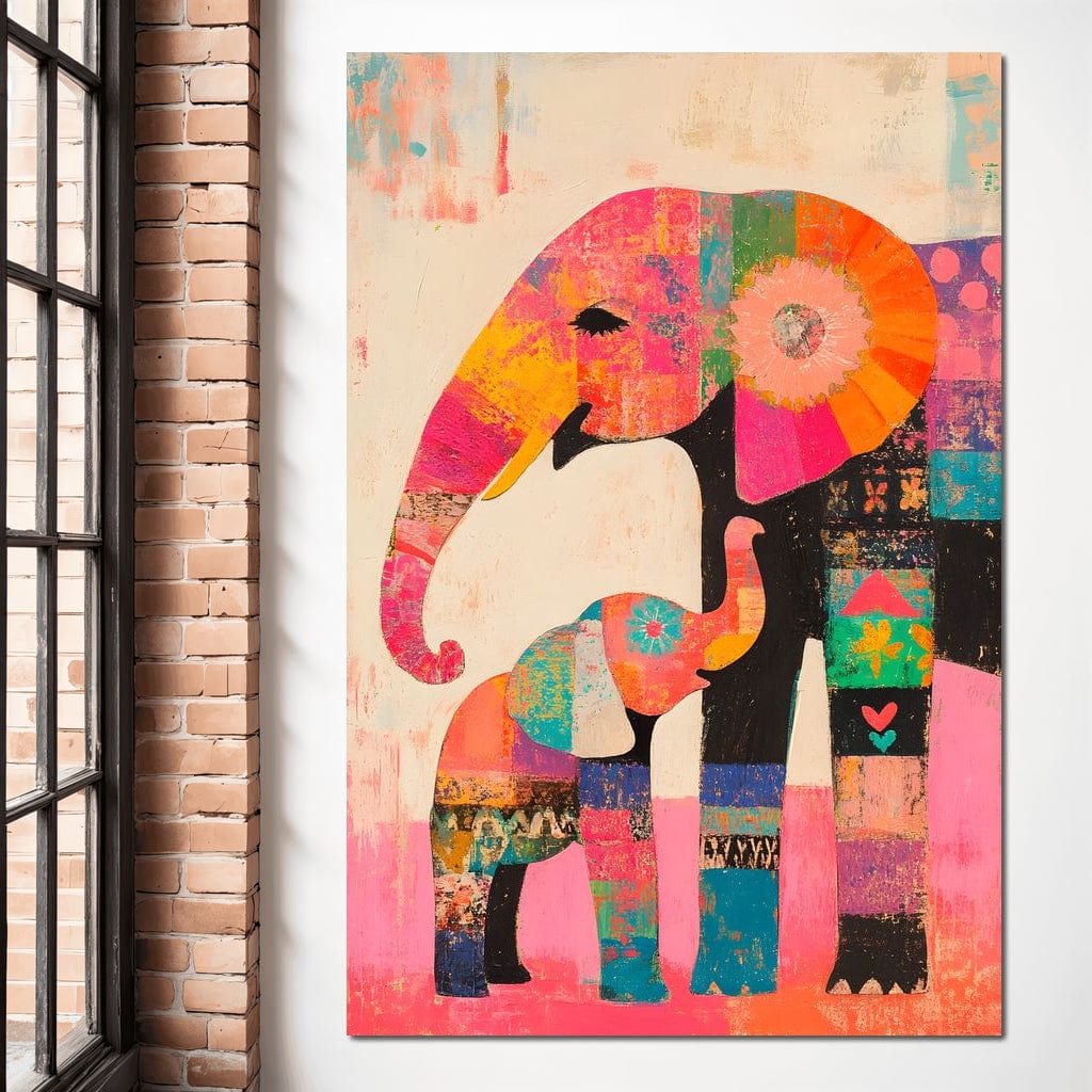 Tablou Canvas Premium, LuxCanva® M1319, Pe Urmele Mamei, Familie, Mama, Pui, Elefant, Arta Abstracta, Mozaic, Dragoste, Copilarie, Multicolor, Legatura, Birou, Living, Camera Copil - 40 X 60