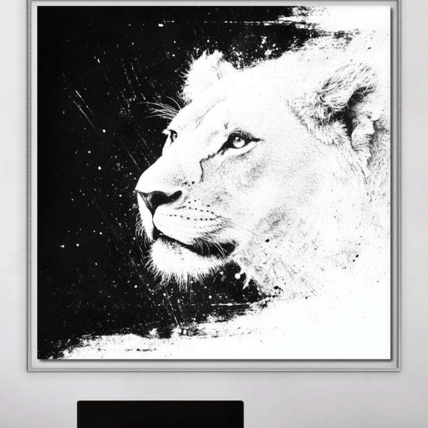 Tablou Canvas Premium, LuxCanva® M1371, Regina Junglei, Leoaica, Alb si Negru, Pictura, Abstract, Portret, Profil, Viziune, Puritate, Noblete, Birou, Living, Camera Copil - 50 X 50