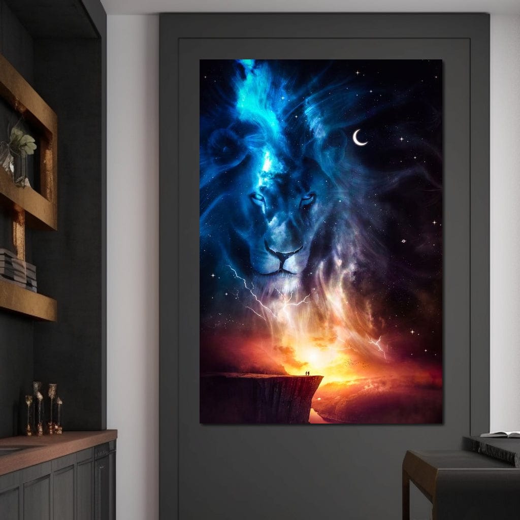 Tablou Canvas Premium, LuxCanva® M1390, Intalnire cu Infinitul, Fulger, Semiluna, Univers, Stele, Apus, Leu, Ceresc, Mister, Spirit, Veghe, Magie, Birou, Living, Camera Copil - 40 X 60