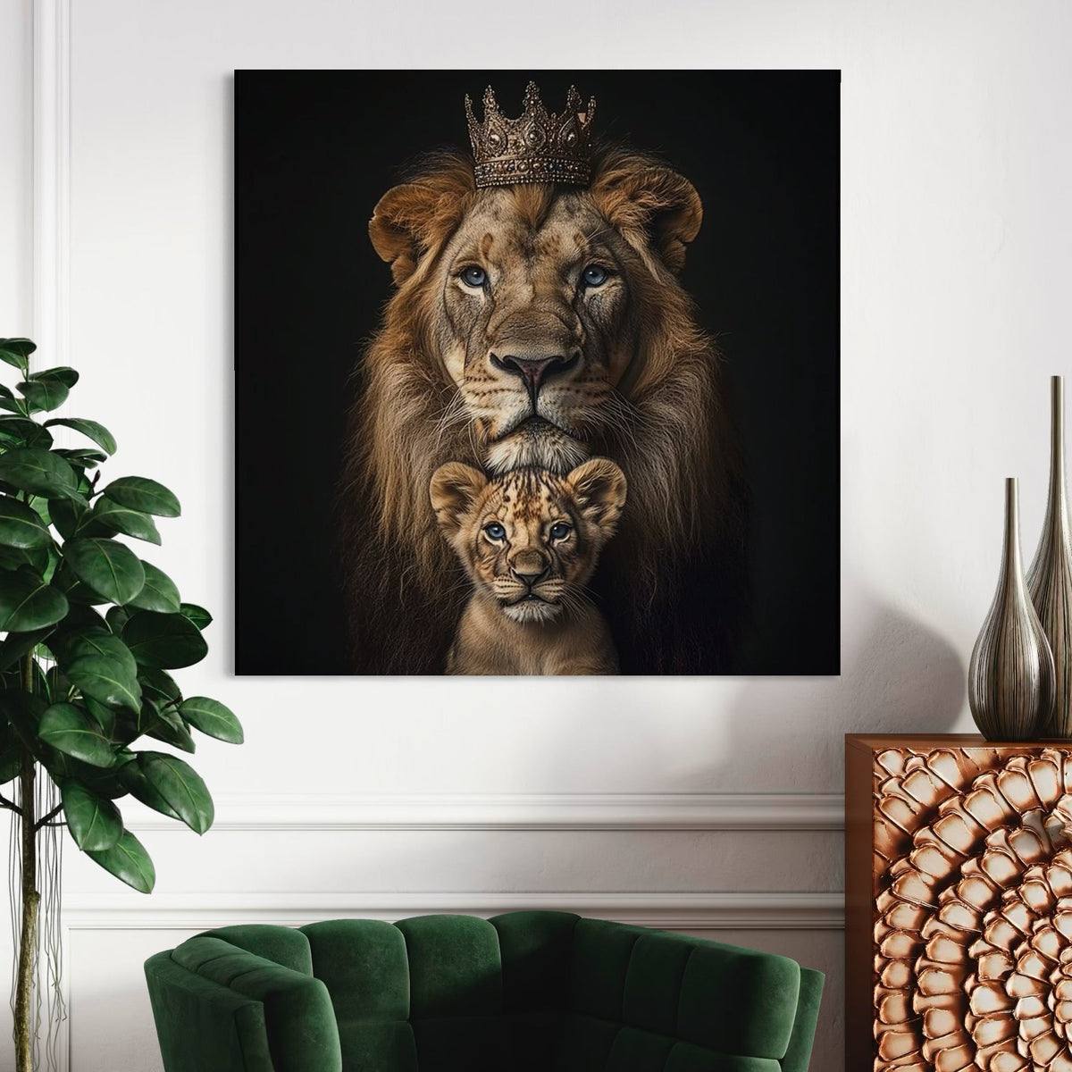Tablou Canvas Premium, LuxCanva® M1549, Taria unui Neam, Tata, Fiu, Rege, Print, Dinastie, Lei, Animale, Coroana, Dormitor, Birou, Living - 50 X 50 / Doar Sasiu Lemn / Normala