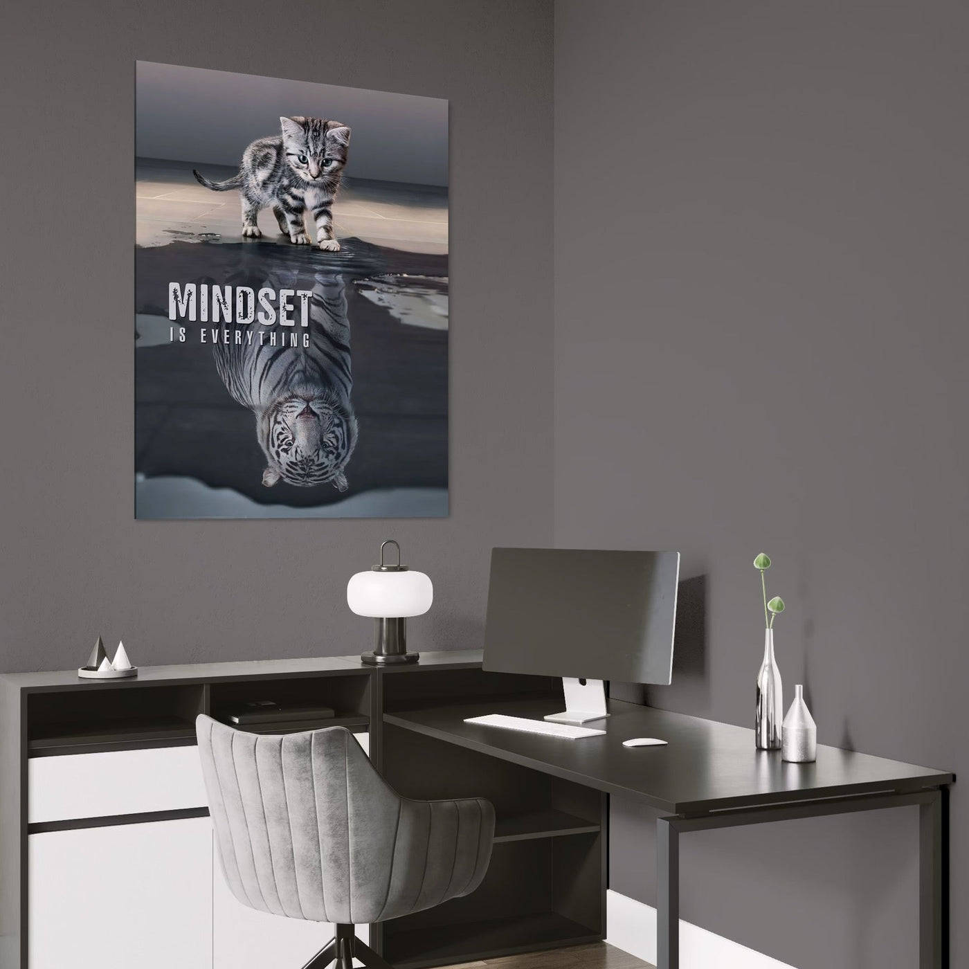 Tablou Canvas Premium, LuxCanva® Q1008, In Oglinda Mintii, Pisoi, Tigru, Reflectie, Oglinda, Crestere, Curaj, Devenire, Identitate, Pui, Apa, Privire, Psihologie, Simbolic, Felina, Birou, Dormitor