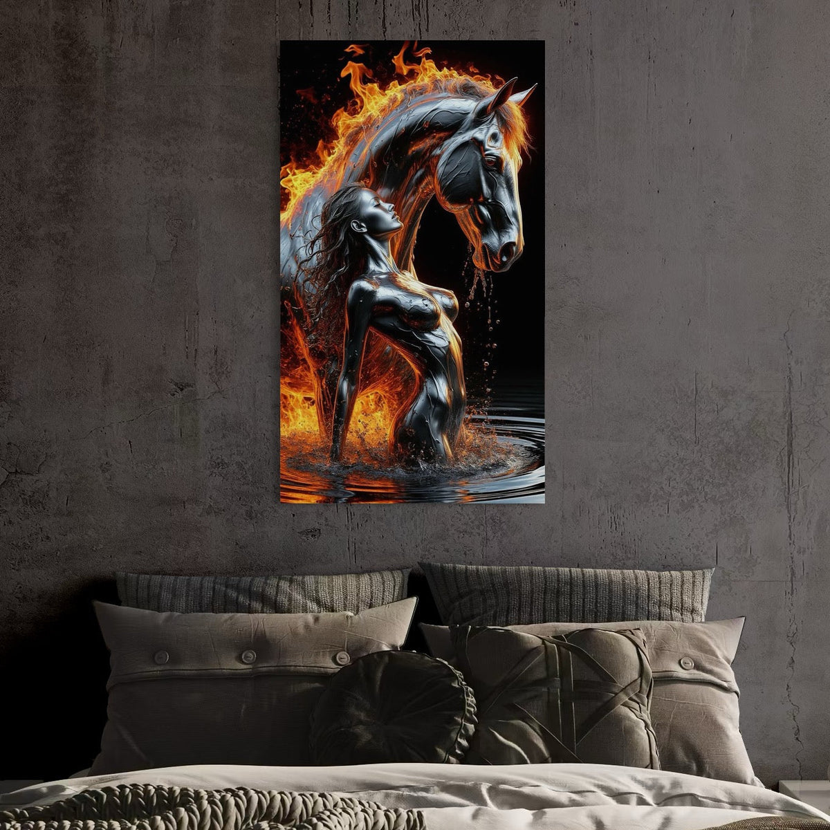 Tablou Canvas Premium, LuxCanva® P1050, Spirit Animalic, Foc, Armasar, Renastere, Jar, Metal, Elemental, Vulcanic, Infern, Apa, Contrast, Mistic, Intensitate, Dorinta, Living, Dormitor - 40 X 70 / Doar Sasiu Lemn / Normala