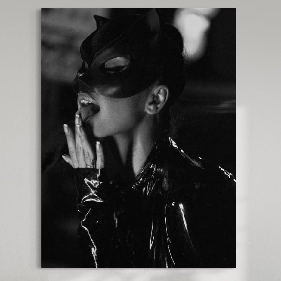 Tablou Canvas Premium, LuxCanva® P1058, Sub Semnul Felinei, Masca, Excentric, Identitate, Negru, Nocturn, Joc, Ritual, Felina, Costumatie, Senzuala, Provocatoare, Living, Dormitor