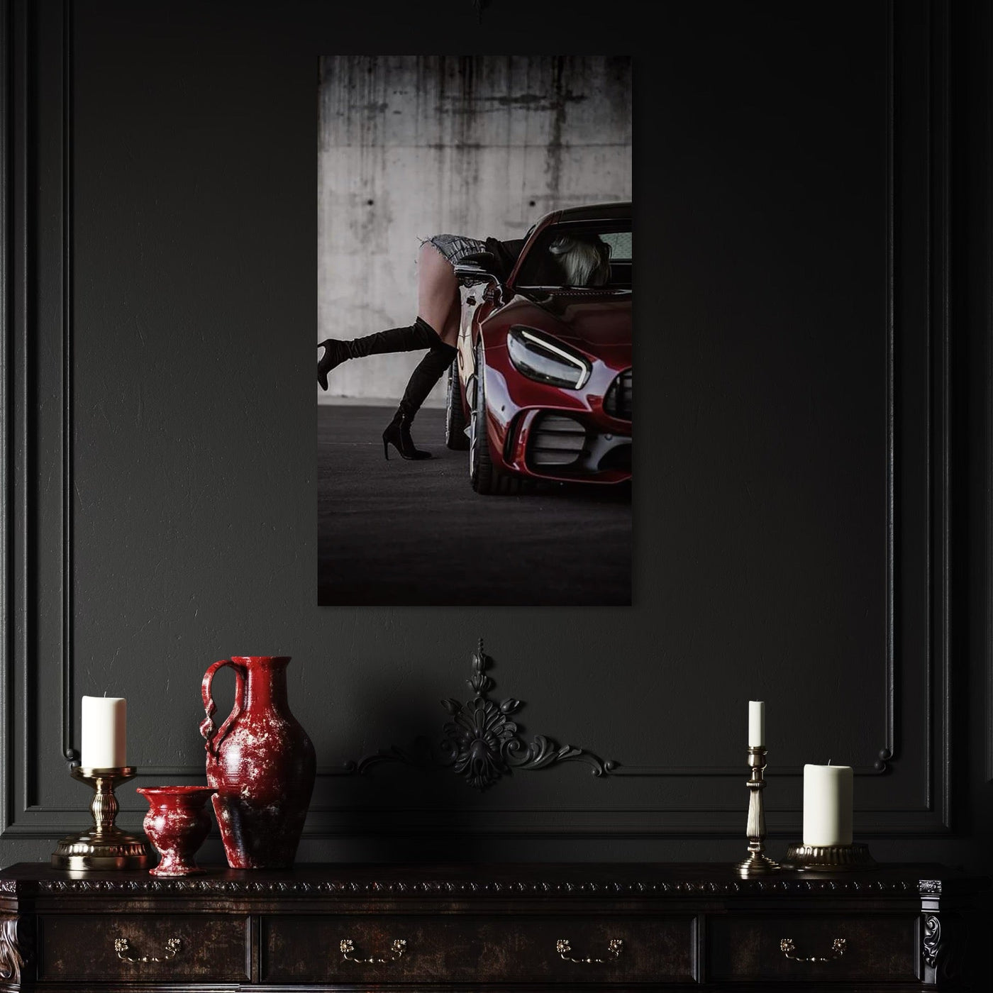 Tablou Canvas Premium, LuxCanva® P1063, Pe Muchia Dorintei, Picioare, Tocuri, Masina Sport, Seductie, Femeie, Sexy, Dormitor, Living