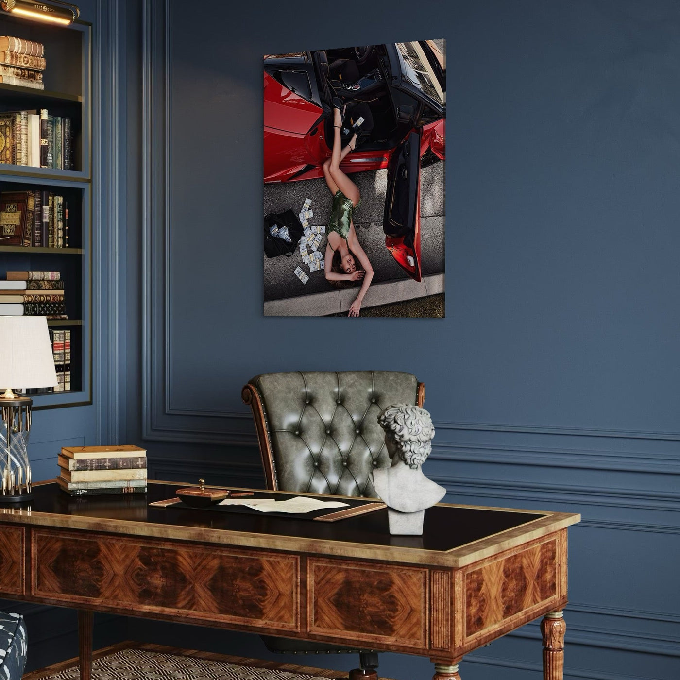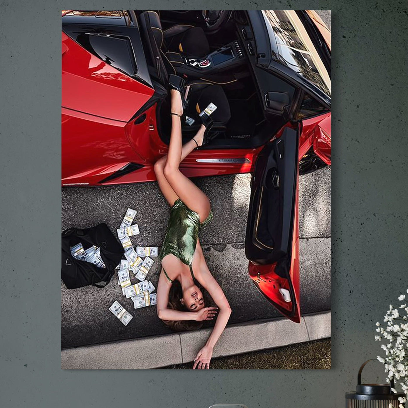 Tablou Canvas Premium, LuxCanva® P1064, Cadere in Ispita, Lux, Opulenta, Sexy, Bancnote, Masina, Femeie, Bani, Seductie, Dormitor, Living - 45 X 60 / Doar Sasiu Lemn / Normala
