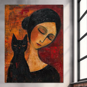 Tablou Canvas Premium, LuxCanva® G1105, Pisica si Muza, Pisica, Femeie, Umbra, Tacere, Ganduri, Boem, Taina, Emotie, Liniste, Iubire, Living, Dormitor - 45 X 60