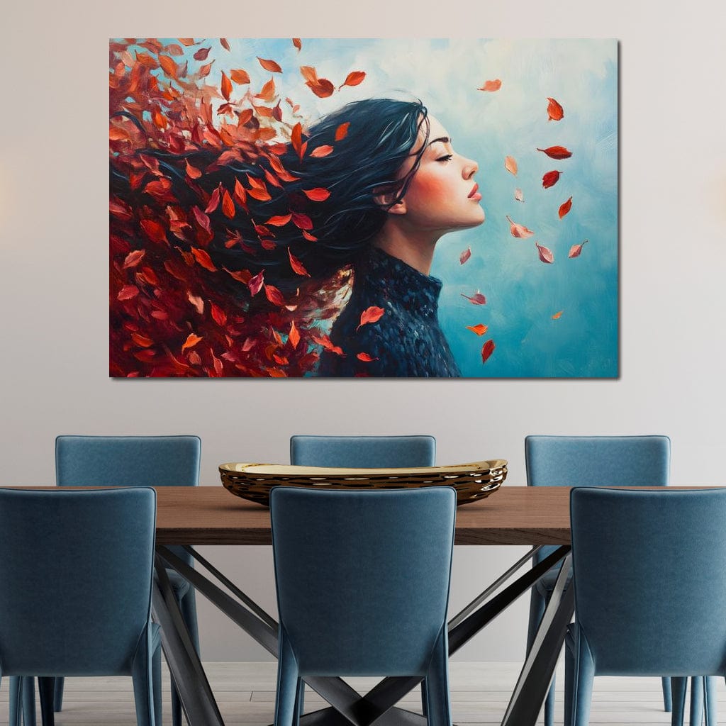 Tablou Canvas Premium, LuxCanva® G1171, Vantul Gandurilor, Ruginiu, Frunze, Clipa, Liniste, Respiratie, Toamna, Serenitate, Poetic, Vant, Introspectie, Zbor, Meditatie, Birou, Living, Dormitor