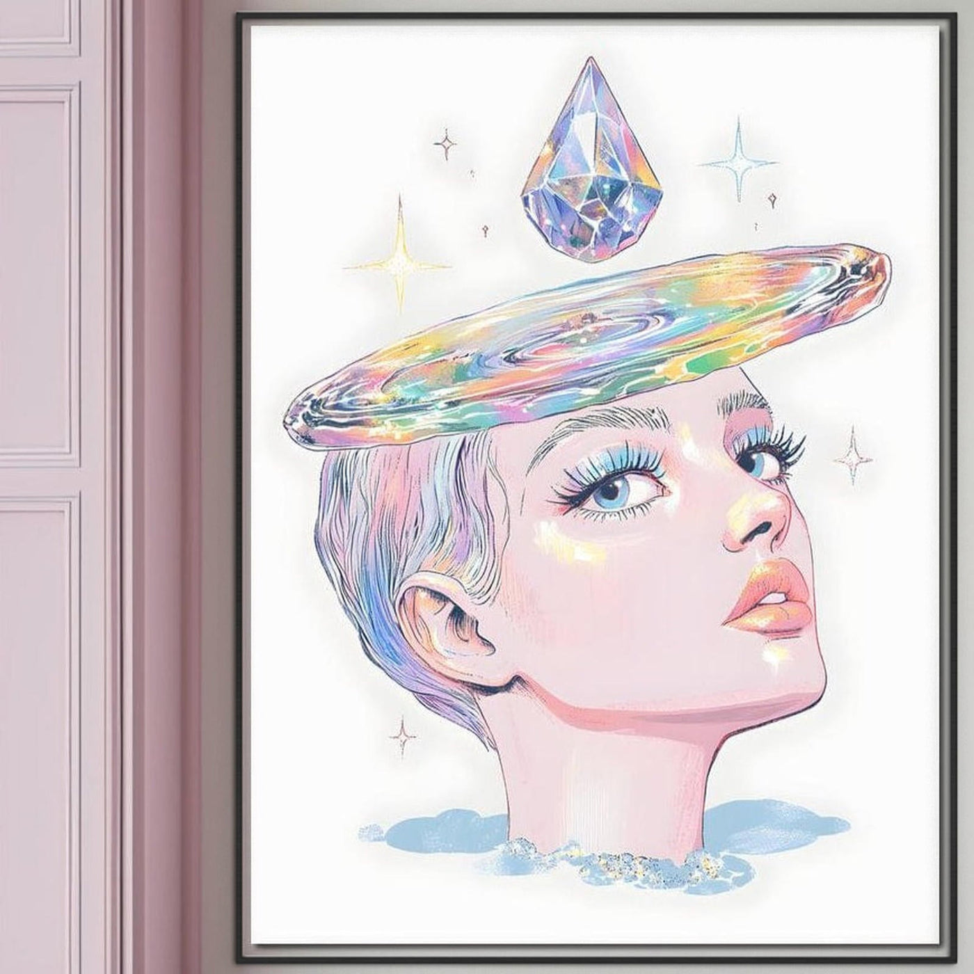 Tablou Canvas Premium, LuxCanva® G1209, Cosmosul din Priviri, Galaxie, Diamant, Univers, Gand, Stelar, Cristal, Coroana, Vise, Eteric, Suflet, Calatoare, Infinit, Taina, Salon, Birou, Living, Dormitor - 45 X 60 / Doar Sasiu Lemn / Normala