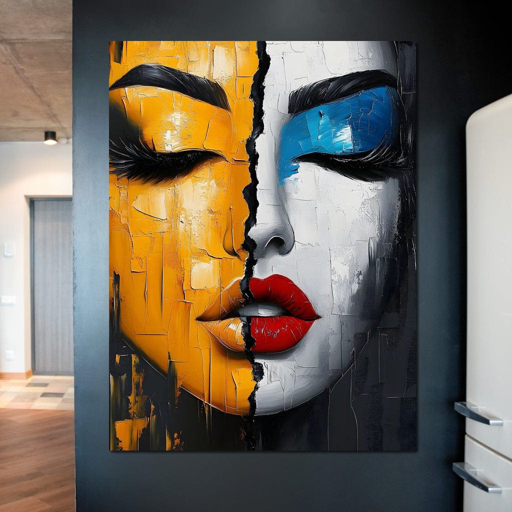 Tablou Canvas Premium, LuxCanva® G1210, Tacere si Strigat, Dualitate, Fete, Contrast, Frumusete, Lumina, Umbra, Masca, Diviziune, Impact, Inima, Portret, Liniste, Pace, Salon, Birou, Living, Dormitor