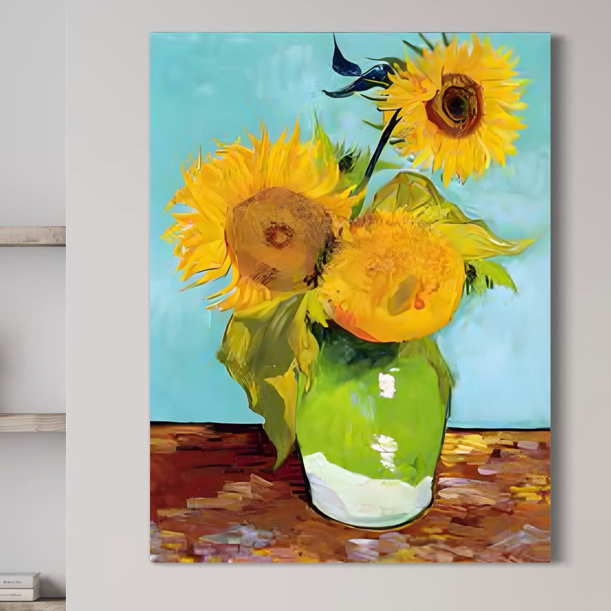Tablou Canvas Premium LuxCanva® A1399, Floarea Soarelui , Room, Floare Galbena, Vaza, Pictura, Planta, Dormitor, Culori Vibrante - 60 X 80