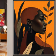 Tablou Canvas Premium, LuxCanva® G1133, Respiratia Frunzelor, Lumina, Pamant, Aur, Umbra, Frunze, Natura, Femeie, Eleganta, Feminitate, Cercei, Profil, Afro, Birou, Living - 45 X 60