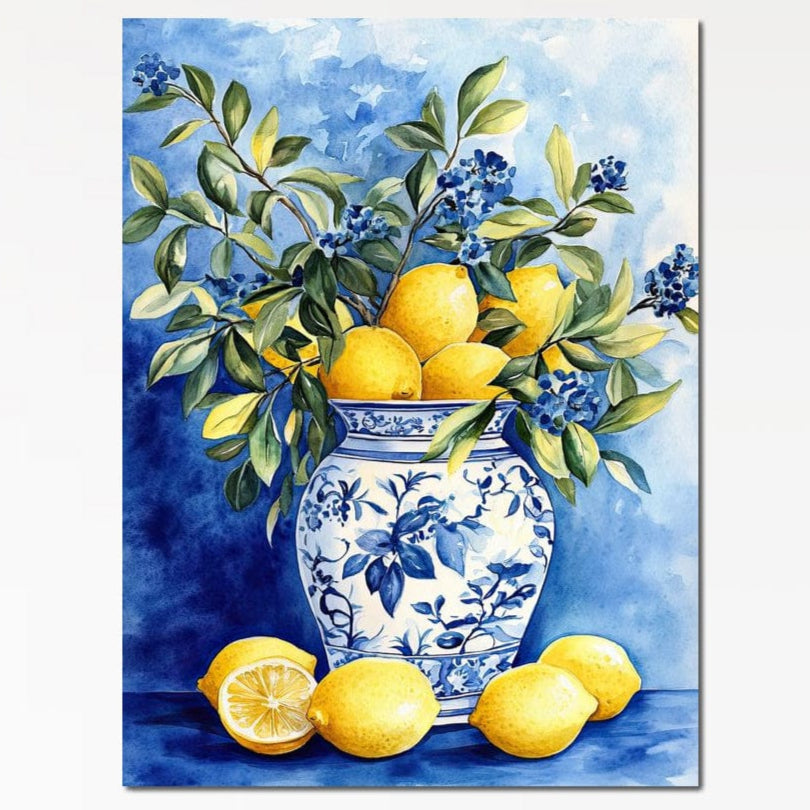 Tablou Canvas Premium, LuxCanva® N1069, Buchet de Lamai, Citrice, Lamaie, Vaza, Ceramica, Limonada, Frunze, Flori, Pictura, Rustic, Restaurant, Bucatarie - 45 X 60 / Doar Sasiu Lemn / Normala