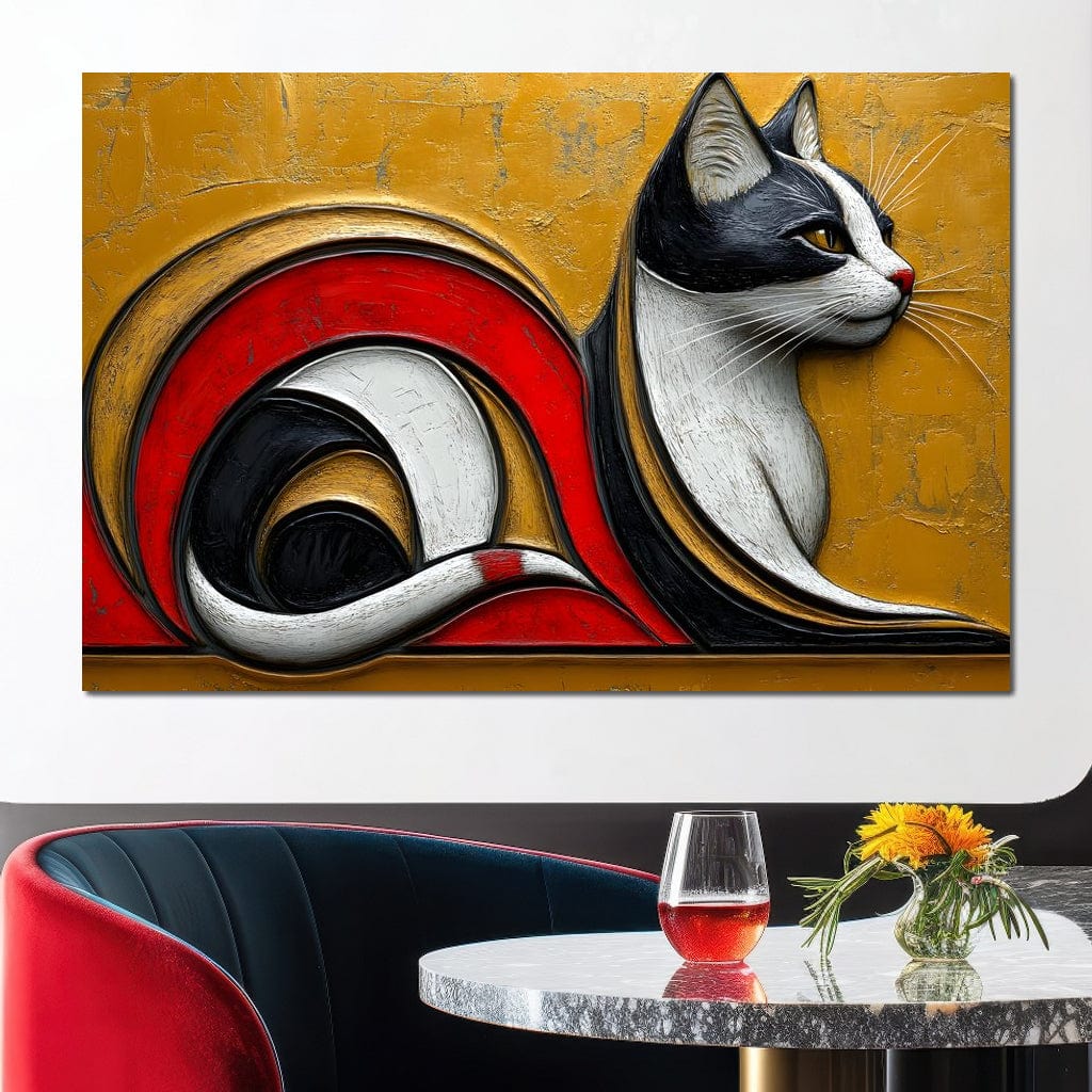 Tablou Canvas Premium, LuxCanva® M1230, Simfonia Mustatilor de Aur, Abstract, Felina, Grafica, Auriu, Profil, Elegant, Forme, Detalii, Antic, Birou, Living, Camera Copil - 40 X 60