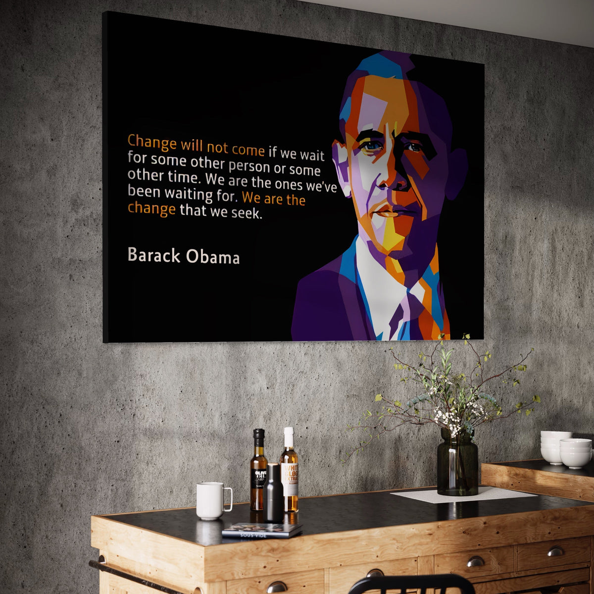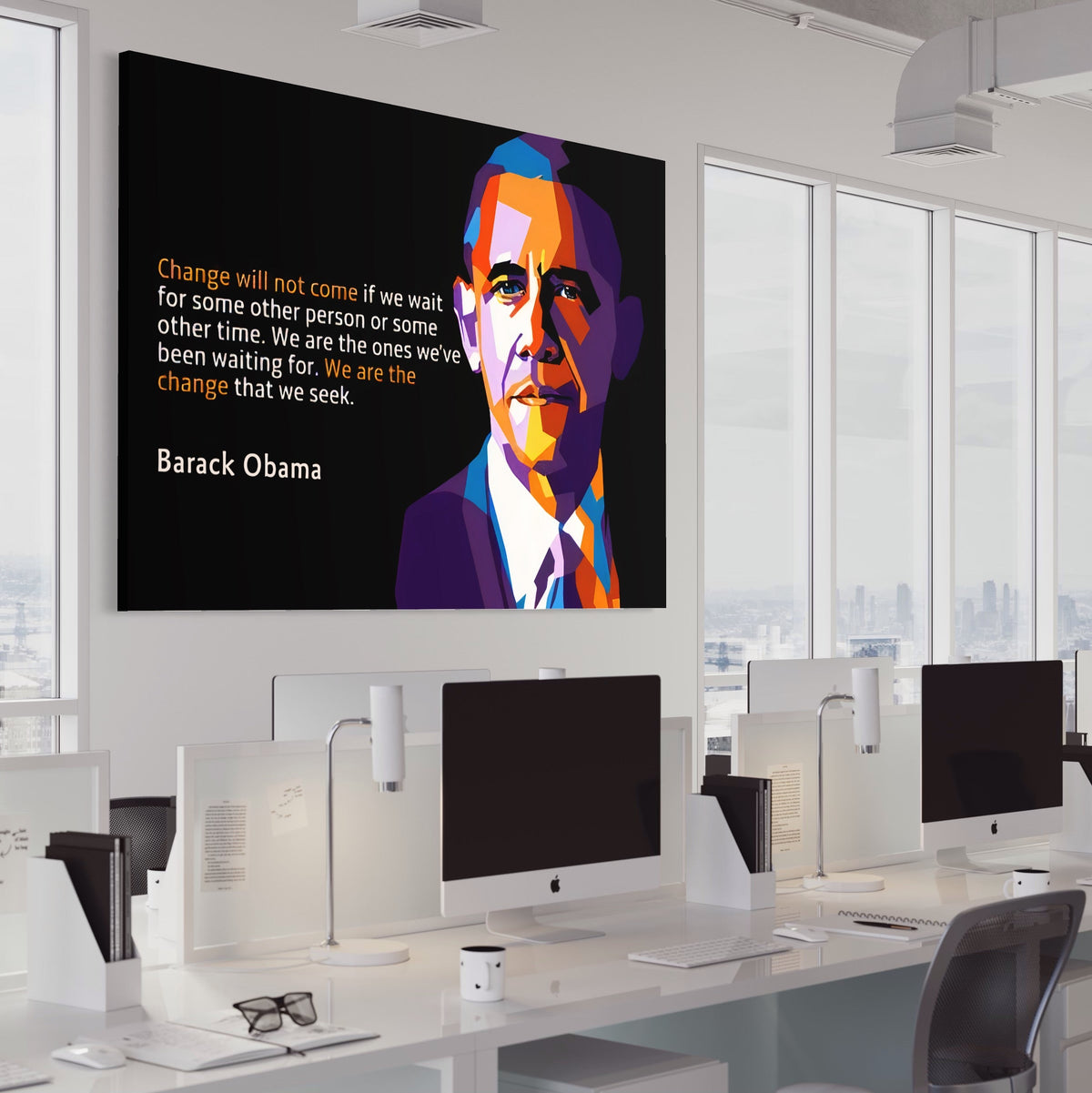 Tablou Canvas Premium LuxCanva® A1184, We Are The Change , Barack Obama, Birou, Motivational, USA, Culori Vibrante - 40 X 60