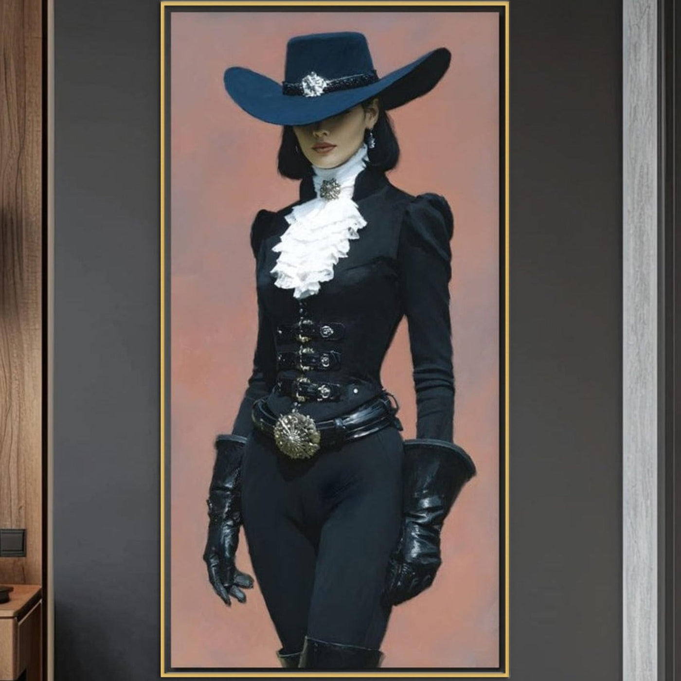 Tablou Canvas Premium, LuxCanva® G1225, Aristocrata Intunericului, Eleganta, Doamna, Palarie, Costum, Negru, Manusi, Mister, Puternica, Rafinata, Autoritara, Lux, Cavaleresc, Salon, Birou, Living, Dormitor - 50 X 100 / Doar Sasiu Lemn / Normala
