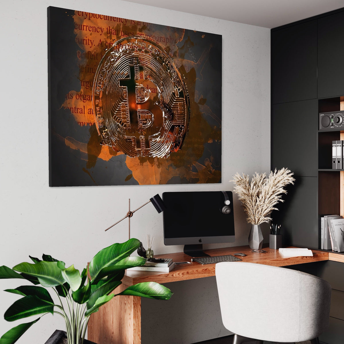 Tablou Canvas Premium LuxCanva® A1153, Moneda Bitcoin ,Moneda Digitala, BTC, Cash, Motivational, Culori Vibrante - 55 X 70