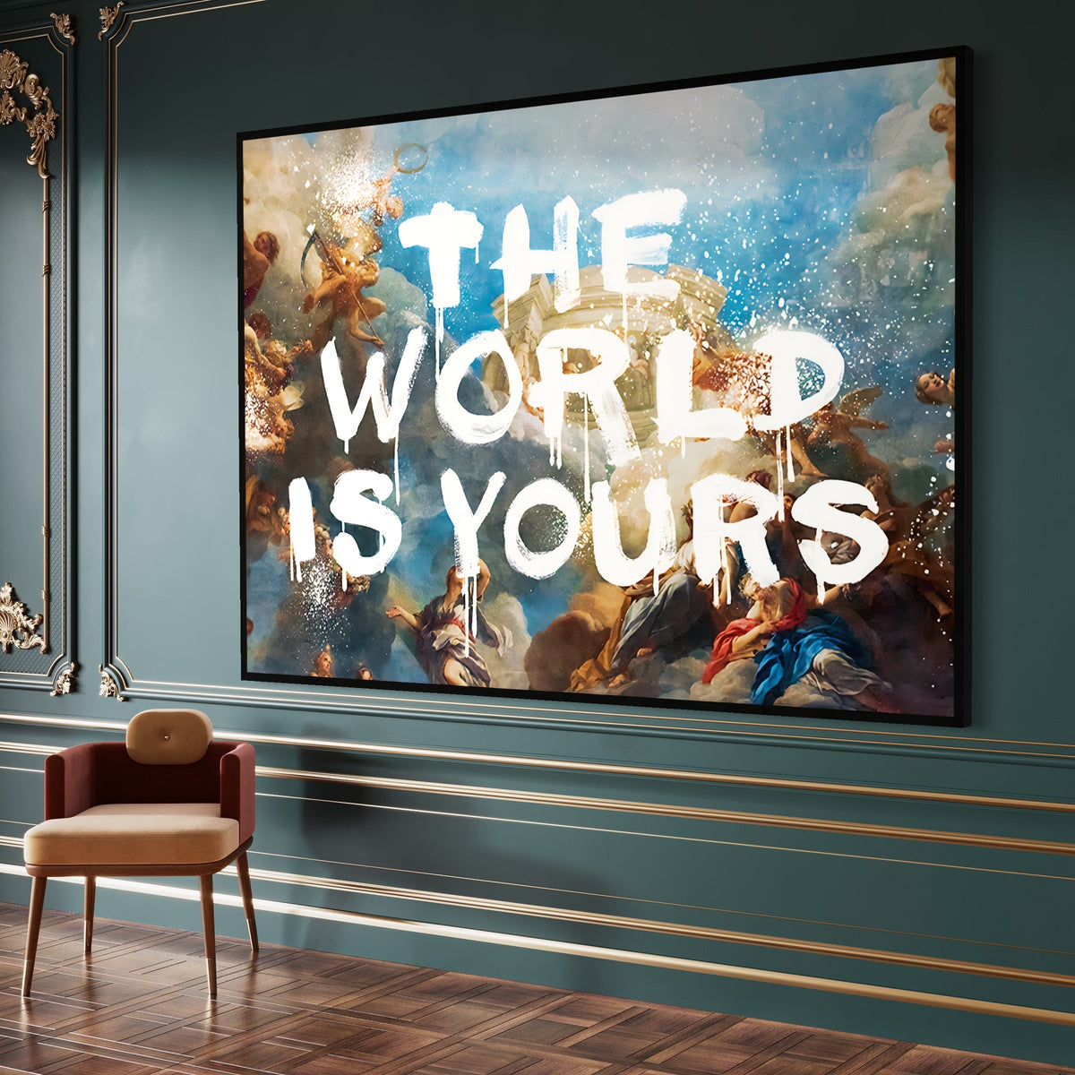Tablou Canvas Premium LuxCanva® A1175, The World Is Yours , Motivational, Birou, Inger, Cer, Culori Vibrante - 40 X 60