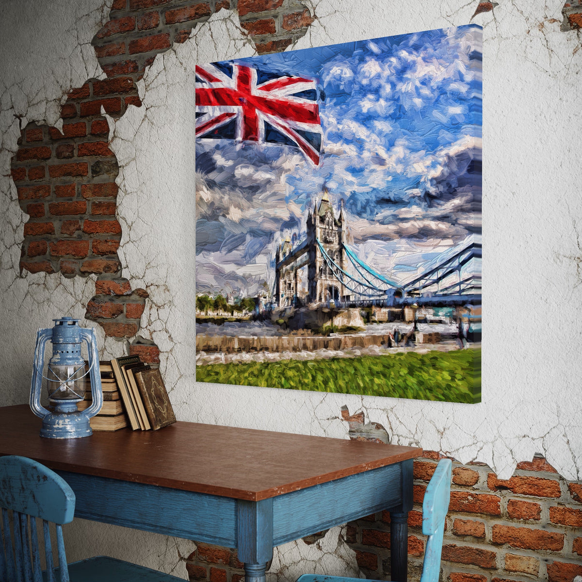 Tablou Canvas Premium LuxCanva® A1077, Tower Bridge , Pod, Londra, Steag, UK, Culori Vibrante - 50 X 50