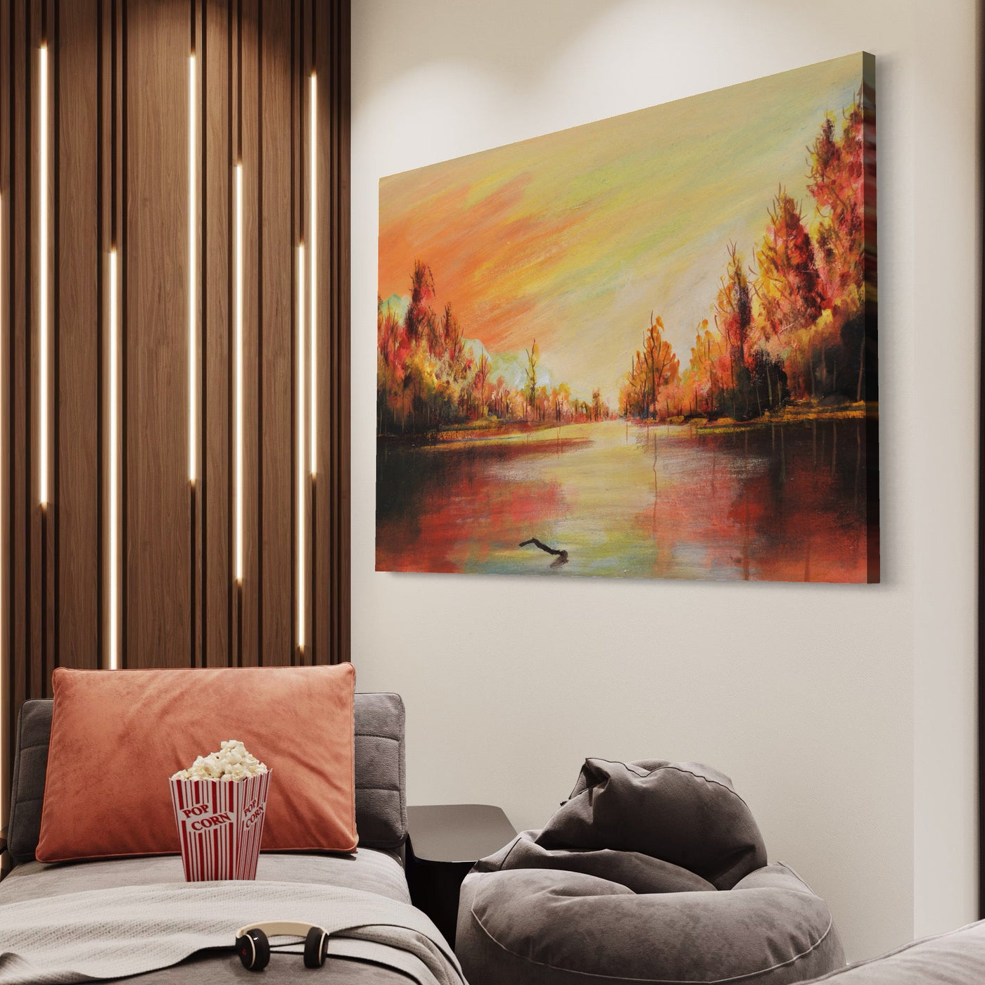 Tablou Canvas Premium LuxCanva® A1102, Apus De Toamna , Peisaj, Padure, Lac, Copaci, Culori Vibrante - 60 X 90