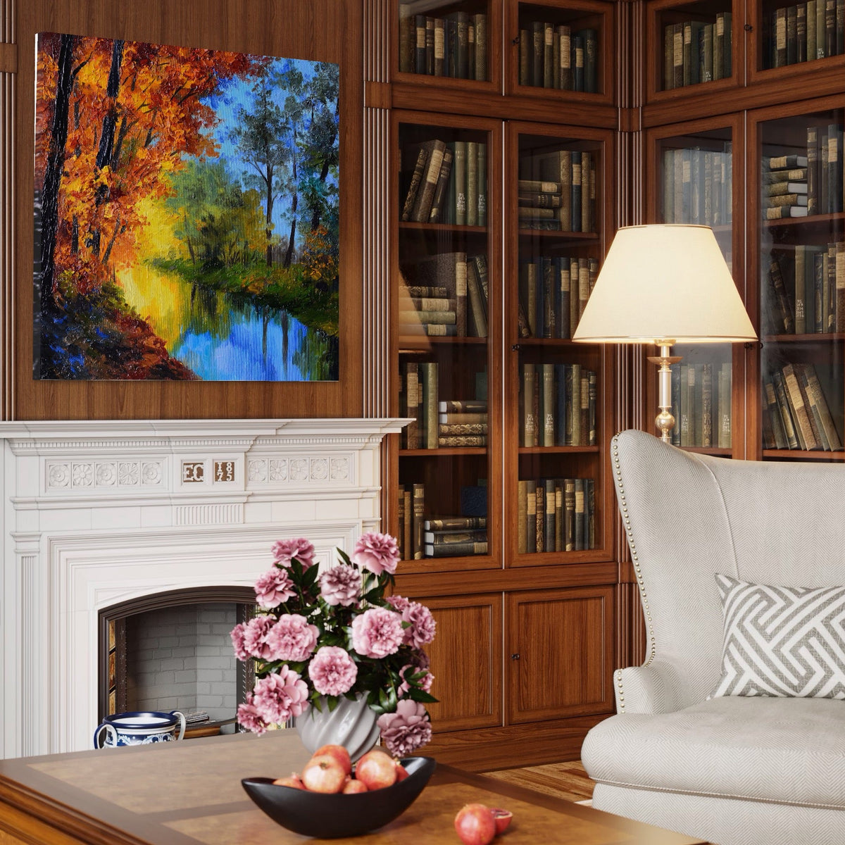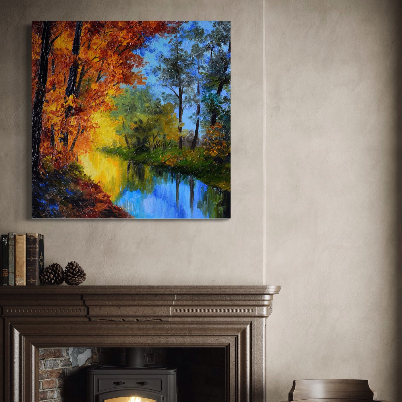 Tablou Canvas Premium LuxCanva® A1114, Langa Padure , Lac, Toamna, Peisaj, Natura, Culori Vibrante - 50 X 50