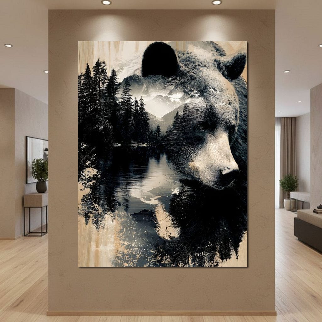 Tablou Canvas Premium, LuxCanva® M1487, Strajerul Padurii, Urs, Salbaticie, Animal, Padure, Peisaj, Natura, Munti, Ape, Dormitor, Birou, Living, Camera Copil - 45 X 60 / Doar Sasiu Lemn / Normala