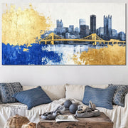 Tablou Canvas Premium, LuxCanva® O1030, Puntea dintre Cer si Apa, Pod, Gold, Auriu, Albastru, Armonie, Ecou, Oras, Umbre, Plutire, Structuri, Calator, Fericire, Motivatie, Birou, Living, Dormitor - 50 X 100 / Doar Sasiu Lemn / Normala