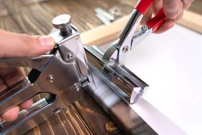 Panza canvas este intins pe un sasiu din lemn de brad, fara noduri. Panza este prinsa cu capse metalice de-a lungul marginei sasiului.