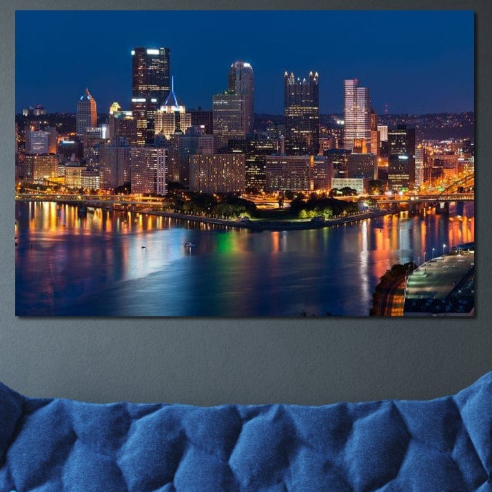 Tablou Canvas Premium, LuxCanva® O1032, Fluviul Tacut, Oras, Rau, Electrizant, Revarsare, Cladiri, Vraja, Albastru, Lumina, Noapte, Freamat, Invizibil, Lume, Pod, Sticla, Birou, Living, Dormitor - 40 X 60 / Doar Sasiu Lemn / Normala