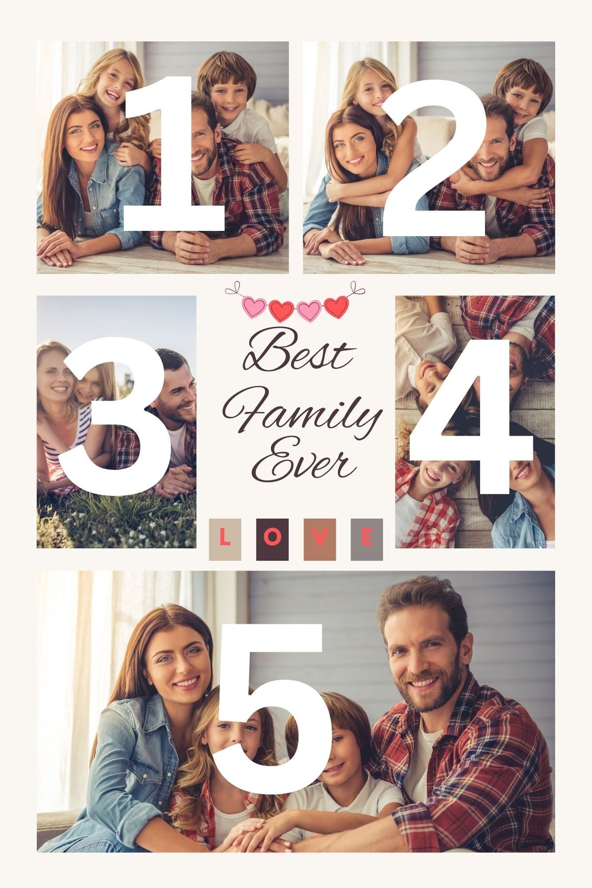 Tablou Canvas Personalizat cu 5 Poze Pentru Familie " Best Family Ever", PS114 - 40 X 60
