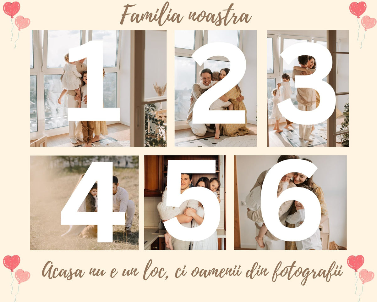 Tablou Canvas Personalizat cu 6 Poze Pentru Familie " Acasa nu e un loc, ci oamenii din fotografii", PS106 - 40 X 50