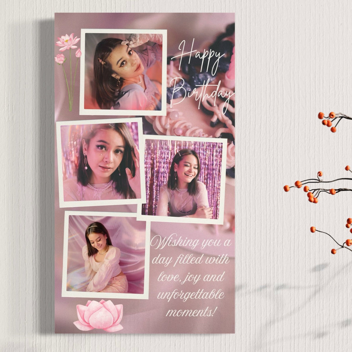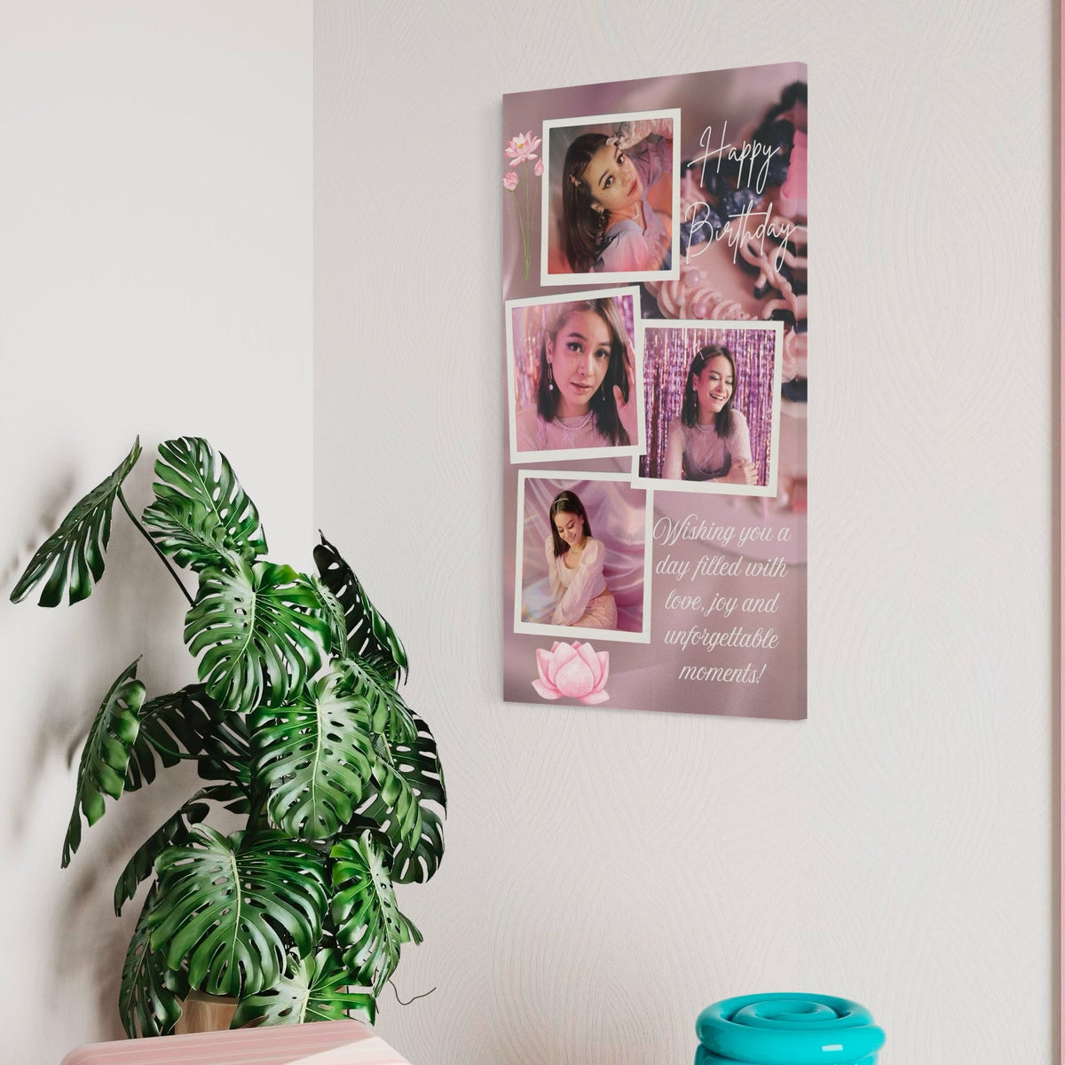 Tablou Canvas Personalizat cu 4 Poze Pentru Aniversari " Happy Birthday", PS139 - 40 X 70