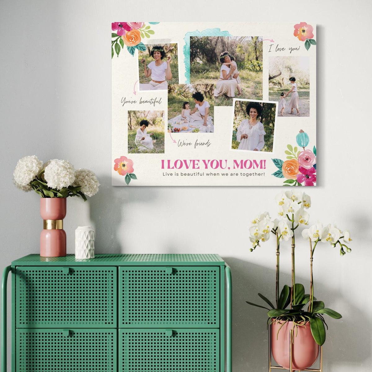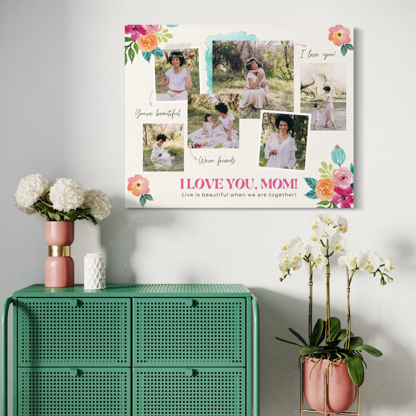 Tablou Canvas Personalizat cu 6 Poze Pentru Mama "I Love You, Mom", PS145 - 40 X 70