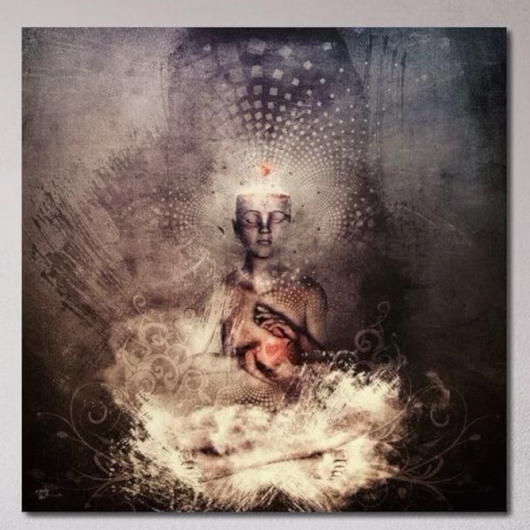 Tablou Canvas Premium LuxCanva® I119, Fiinta Cosmica, Buddha, Inima, Iluminare, Transcendenta, Pace Interioara, Esenta, Univers, Spiritualitate, Zen - 50 X 50
