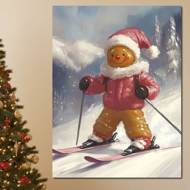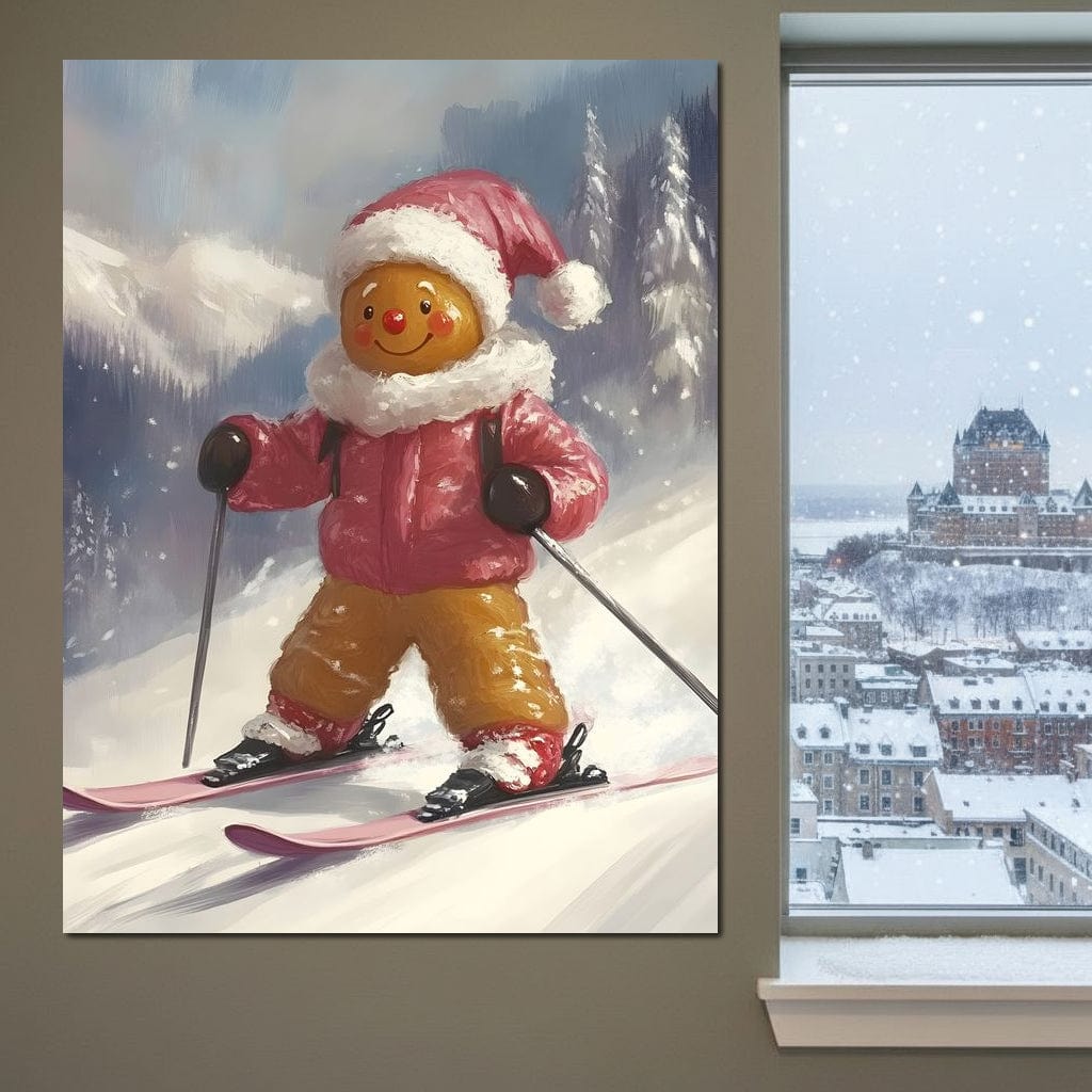 Tablou Canvas Premium, LuxCanva® D1094, Turtita pe Partie, Dulce, Prajitura, Schi, Iarna, Zapada, Munte, Aventura, Sport, Geaca, Rosie, Bucurie,Sarbatori, Veselie, Vacanta, Camera Copil, Living, Dormitor - 45 X 60 / Doar Sasiu Lemn / Normala