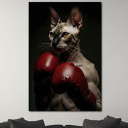 Tablou Canvas Premium, LuxCanva® M1229, Lovitura Sphynxului, Motan, Sphynx, Muschi, Puternic, Mustati, Motivat, Box, Campion, Manusi, Sport, Energie, Birou, Living, Camera Copil - 60 X 90