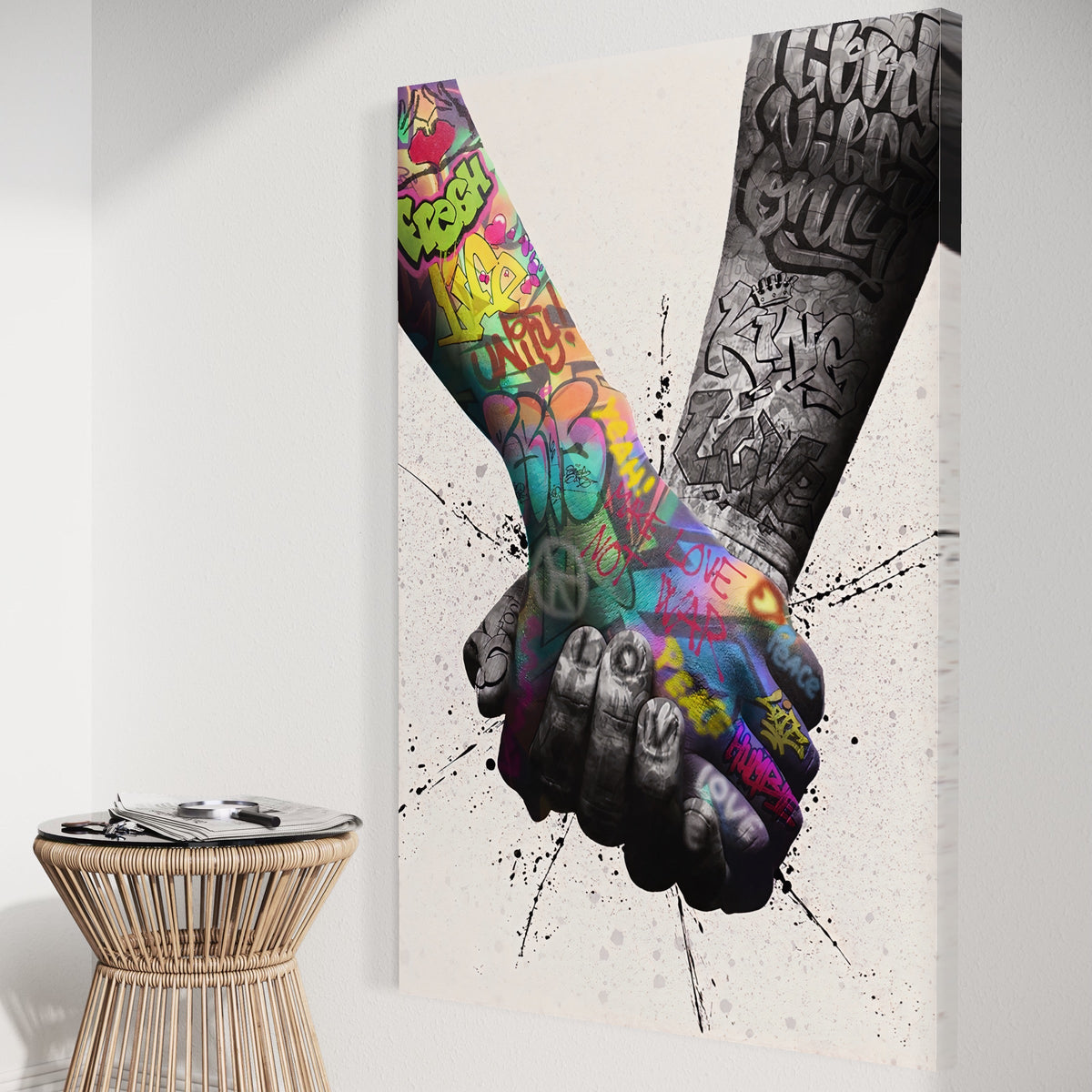 Tablou Canvas Premium LuxCanva® A1149, 2Hands , Decorativ, Love, Street Art, Graffiti, Culori Vibrante - 40 X 60