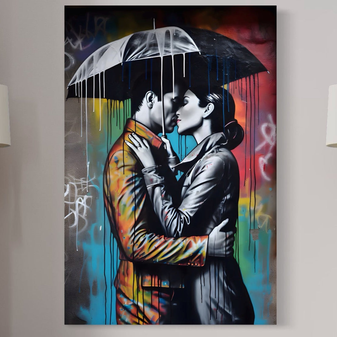 Tablou Canvas Premium LuxCanva® A1540, Romantic Rain , Dormitor, Cuplu, Ploaie, Umbrela, Living, Culori Vibrante - 40 X 60