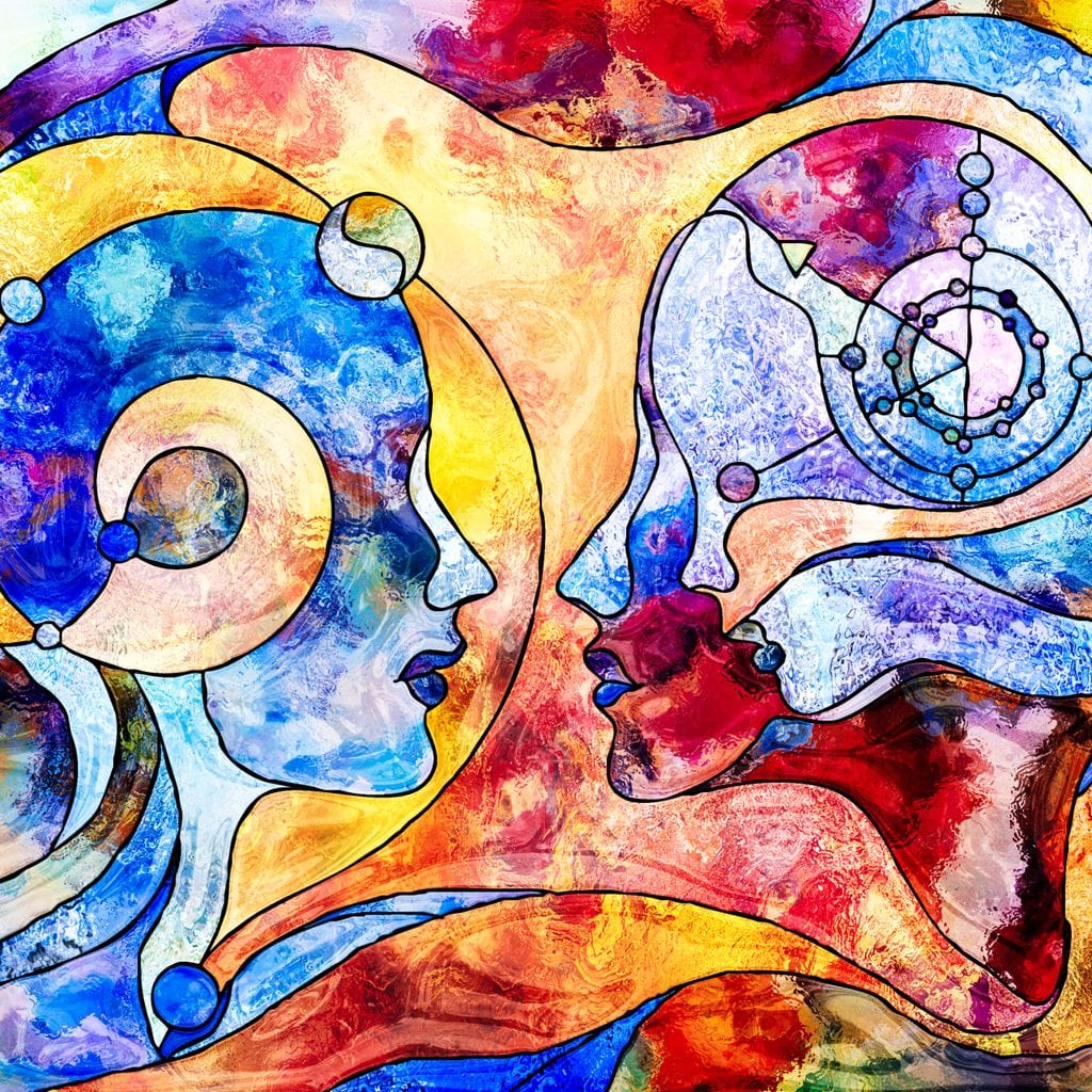 Tablou Canvas Premium, LuxCanva® E1030, Dialogul Sufletelor, Dualitate, Mister, Chipuri, Spiritual, Pereche, Living Room, Culori vibrante - 60 X 90